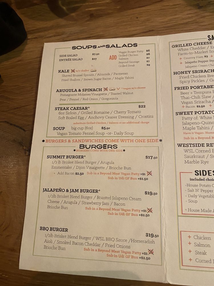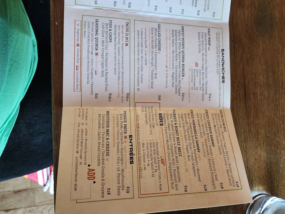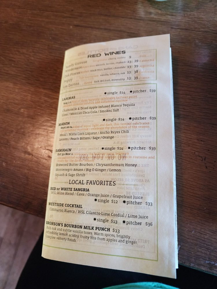 The Westside Local Menu